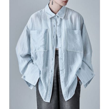 気だるく無造作に着てもオシャレに見える、晩夏まで使えるカラーが目を惹くニュアンスストライプ柄のシアーシャツ。