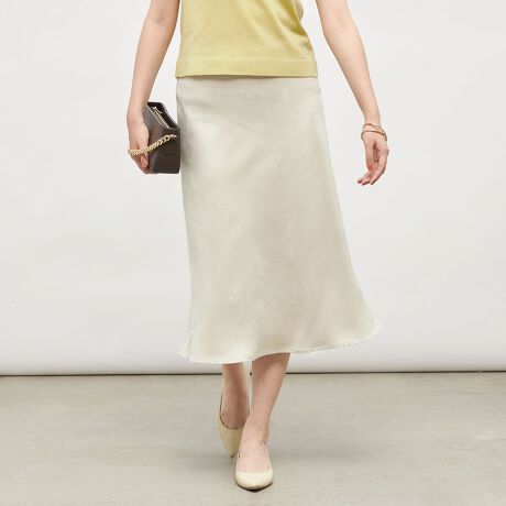 ・バイヤス使いならではの、身体のラインに沿う女性らしくすっきり見えるナローシルエット