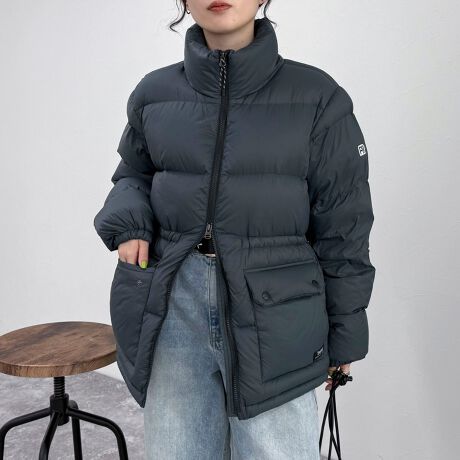 ダウンは天然由来の素材であるため、稀に濃い色の羽が混入することがあり、表面に透けて見える場合がございます。※こちらは不良品ではございません。返品や交換につきましてはご対応いたしかねますので、あらかじめご了承ください。(解消方法:少し目立つ箇所がございましたら両手で少し揉んで頂くと目立たなくなります。)