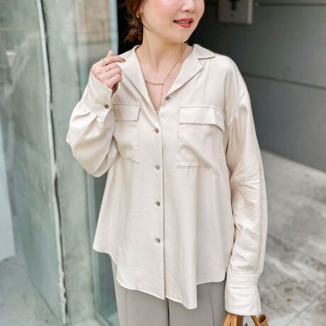 《セットアップ対応》ウォッシャブルフィブリルサテンオープンカラーシャツ