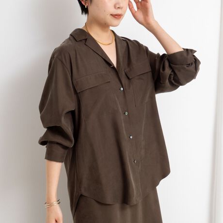 《セットアップ対応》ウォッシャブルフィブリルサテンオープンカラーシャツ