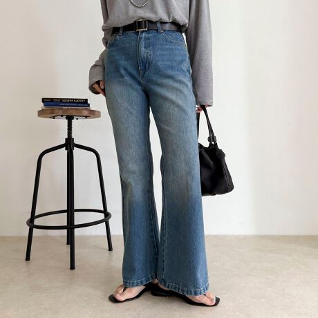 ・腰回りから裾に向かって広がるすっきりとしたフレアシルエットが、脚を長く美しく見せてくれるフレアデニム