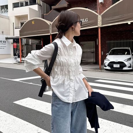 1枚で着映え!レディライクな着こなしが叶うシャーリングシャツ