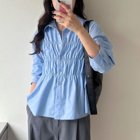 1枚で着映え!レディライクな着こなしが叶うシャーリングシャツ