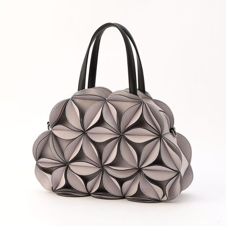 ◆デザインは3Dフラワーモチーフと配色カラーがインパント大のミニボストンバック。