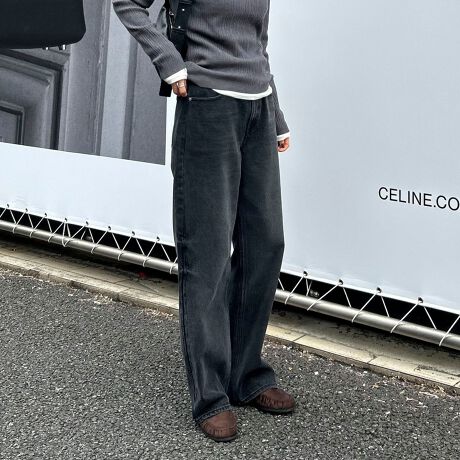 ストレートシルエットが脚長効果抜群のデニムパンツ