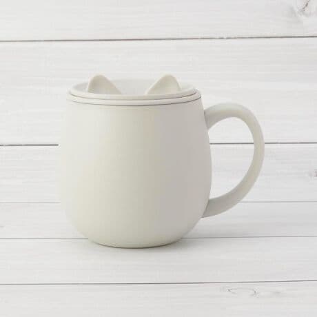 猫の耳を押すと開いて、開閉すら癒しになるマグカップは保温保冷力のある真空二重構造。