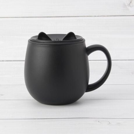 猫の耳を押すと開いて、開閉すら癒しになるマグカップは保温保冷力のある真空二重構造。