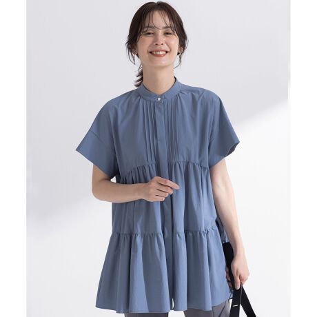 【スタッフコメント】▼身長158cm|着用サイズ2 (通常着用サイズM)さらっとした素材感が夏にぴったりのティアードブラウスです。ゆとりのあるシルエットなので肌離れが良く着心地も抜群です!