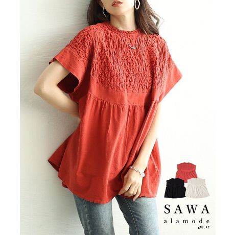 一枚で着映える、品のある存在感。繊細な立体デザインとふんわり広がるシルエットが、日常にさり気ない特別感をプラスしてくれるチュニック。胸元には、丁寧に施された立体的デザインが幾何学模様のように浮かび上がり、モード感のある印象に。布の重なりが織りなす陰影が、無地ながらも奥行きのある表情を生み出します。手の込んだディテールながら派手になり過ぎず、落ち着いた色合いが大人の上品さをしっかりとキープ。フレンチ&ドルマンスリーブデザインに、裾に向かって自然に広がるフレアシルエットで、締め付け感のないリラックスした着心地ながら、体型カバー効果も抜群。気になる腰まわりやヒップもふんわりと包み込んでくれるから、着るだけでこなれた印象に。首元にはバックボタン付きで着脱も楽々。柔らかく通気性に優れたコットン素材を使用。春夏の蒸し暑い日でも快適に過ごせる、軽やかな着心地が魅力です。