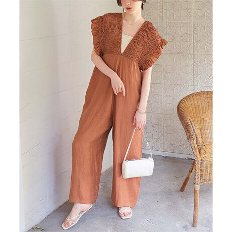 シャーリングフリルオールインワン