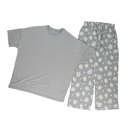【いつでも快適なお家時間をサポート】お気に入りのアイテムで、心地よくリラックス♪「上下セットルームウエア」。【涼しい着心地◎接触冷感トップス】滑らかな手触りのトップスには、接触冷感加工をプラス。触れるとひんやり気持ちいい♪(※1)接触冷感の効果の目安は1シーズンです。【サラリと軽やかに履けるボトムス】コットンクレープのパンツ。ウエストゴム&紐をキュッと絞って、自分サイズにフィット。(※2)左右にポケット付きです。【ゆったりボディラインを拾いにくい】どちらも余裕を持たせたシルエット。動きやすく、旅行などでのナイトウェアとしても。(※3)09.グレー/85.ネイビー/90.ラベンダーは前後の丈感に差を付けたアシンメトリー。02.アイボリー/04.ダークグレージュ/85.ネイビー2はスタンダードなデザインです。【上品なナチュラルデザイン】シンプルなワンカラーのトップス&植物のデザインをプリントしたパンツ。おしゃれな着こなし♪