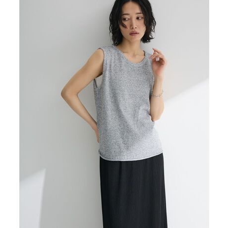 ミックスカラーのナチュラルな雰囲気がおしゃれなニットプルオーバー。前後どちらを前にしても着用できる2WAY仕様で着回しやすく、ボタンを開けてベスト風に着こなすのもおすすめです。ドライタッチな肌触りと伸縮性に優れた快適な着用感も魅力的。合わせ方次第で幅広いコーディネートに活躍する魅力的なアイテムです。透け感[ややあり]