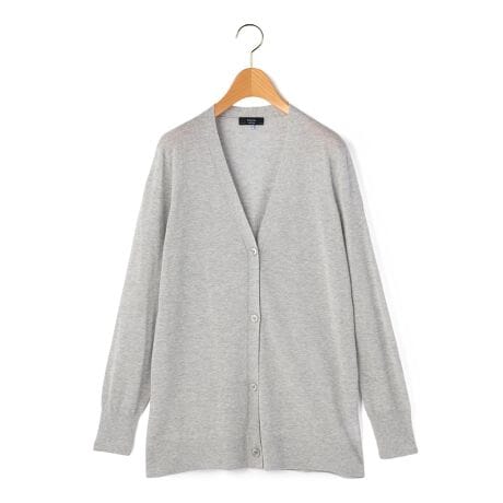 長めのリブと深めのVネックがスタイリッシュなムードの長袖ニットカーディガン。フロントはボタン仕様で重ね着に便利。コットンアセテート素材のさらっと軽やかな素材感も魅力。シンプル&スタンダードなデザインでトレンドに左右されず長く愛用できる一枚。毎日の着こなしで活躍する汎用性抜群のアイテムです。