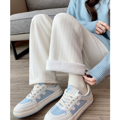 ジャガード柄裏フリースワイドパンツ 裏起毛 あたっか