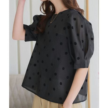 さりげない甘さと上品さを兼ね備えた、大人可愛いドットシアーブラウス。