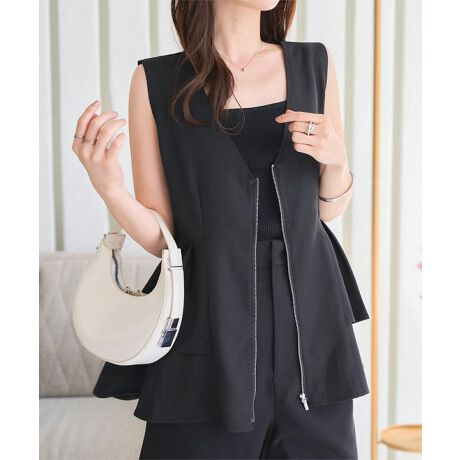 深めのVネックが顔まわりをスッキリ見せ、裾のペプラムデザインが女性らしい動きをプラスします。