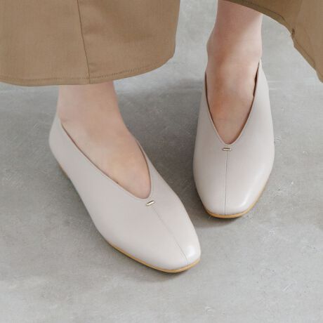 深めのVカットと柔らかいシープレザーで包まれるような履き心地です。つま先、かかともソフトに仕上げているので、足に馴染みやすく快適に履いていただけます。