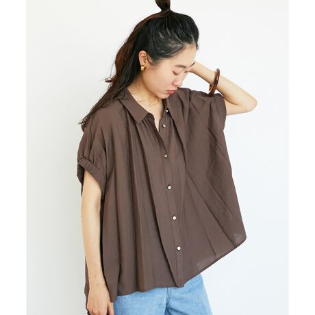 独特なシボ感がありシワになりにくいので、ホームクリーニング可能・アイロン要らずで夏の洗濯が多い時期にも嬉しいブラウス。