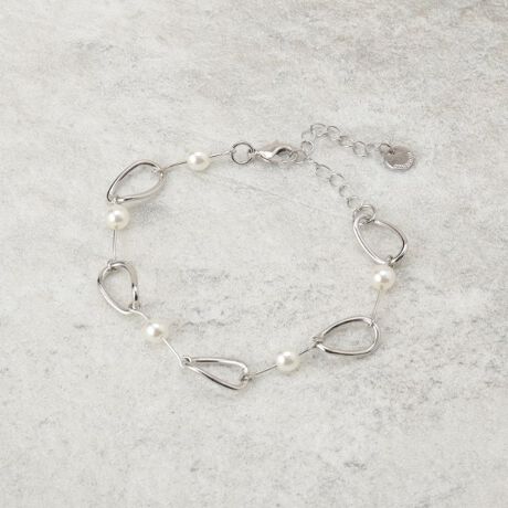 メタルとフェイクパールを掛け合わせた上品なチェーンブレスレット