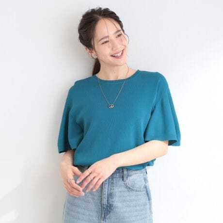 シンプルなラウンドネックなので、ネックレスをプラスすると華やかになりおすすめです。