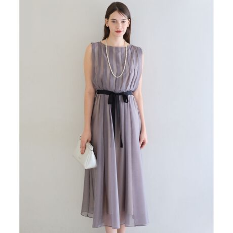 タックのディティールをきかせて程よく甘さを抑えたデザインドレス。バックはトップスをレイヤードしているように見せることでウエストラインをさりげなくカバーします。ウエストベルトはブラックのグログランを使用し、シックな雰囲気をプラスしてくれるアクセントに。視覚的にすっきりとした印象になるよう仕上げています。やわらかな優しい雰囲気のブラウン(#030)と、肌馴染みよく幸福感をくれるイエロー(#040)、清楚な気品が漂うネイビー(#075)の3色展開です。