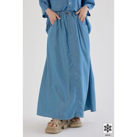 ■ポイント程よいボリュームシルエットのマキシスカート。後ろ身だけウエストゴム仕様になっていて楽に着用できます。■ディテールテンセルデニムで落ち感があり滑らかな風合いで着心地が良いマキシスカート。接触冷感素材でこれからの季節にピッタリなアイテムです。右後ポケットにはオリジナルの織ネーム付きです。■スタイリングビッグTEE合わせのときはトップスをインさせたり、ミニマムシルエットTEEを合わせてメリハリのあるスタイリングと幅広いトップスと合わせていただけます。■生地製品BIO ブリーチ加工をしています。経年劣化による色落ちがあります。加工による多少の個体差があります。■透け感:なし■裏 地:なし■伸縮性:なし■光沢感:ややあり[注意事項]※画像の商品はサンプルです。実際の商品と仕様、加工が若干異なる場合があります。※画像の商品は光の照射や角度、お使いのモニター環境により、実物と色味が異なる場合がございます。※着用、お取り扱いの際は、アテンションタグをご確認ください。