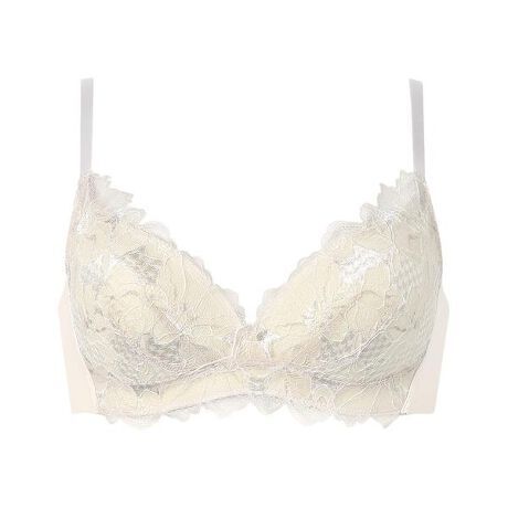 ・フレームひとつで、あがるブラ●キレイな谷間、ふっくらデコルテ 「マイクロフレーム」の特徴 左右カップ一体型の極小立体樹脂フレームがしなやかにフィットし、バスト中央にぴったり収まってキレイな谷間にメイク バスト中央の立ち上がり角度がキープされるので、しっかり持ち上げ、ふっくらデコルテに●脇すっきりシルエット 「フラットフリーサイド」の特徴 カップ脇に硬いものが何もなくフラットな設計なので、からだのラインに沿い、なじみながら脇すっきりシルエットにととのえる●サイドから背中のラインをすっきり バックは上下辺テープレスで、脇・背中にくいこみにくく、フラットでなめらかなつけごこち・脱いだときも、あとがつきにくい・取扱い表示は本体素材にプリントしているから、肌あたりがやさしい※環境に配慮した再生糸混のレースを使用ノンワイヤーなのに、バストアップしてきれいなシルエットで人気の「SUHADA ONE」。「ワイヤーブラは苦手、でもバストメイクはしたい」という方におすすめです。プリズムの光をイメージした花を、レースにプリントを重ねて幻想的に表現。大きな花が存在感を放つエレガントなデザインです。レースはカラーによって選べる3タイプのプリントを展開。モダンな千鳥格子柄のプリントから、花柄のトレンド感のあるものまで、バリエーション豊かなラインアップです。