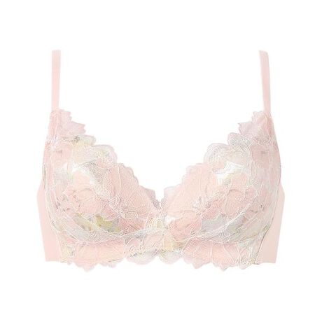 ・フレームひとつで、あがるブラ●キレイな谷間、ふっくらデコルテ 「マイクロフレーム」の特徴 左右カップ一体型の極小立体樹脂フレームがしなやかにフィットし、バスト中央にぴったり収まってキレイな谷間にメイク バスト中央の立ち上がり角度がキープされるので、しっかり持ち上げ、ふっくらデコルテに●脇すっきりシルエット 「フラットフリーサイド」の特徴 カップ脇に硬いものが何もなくフラットな設計なので、からだのラインに沿い、なじみながら脇すっきりシルエットにととのえる●サイドから背中のラインをすっきり バックは上下辺テープレスで、脇・背中にくいこみにくく、フラットでなめらかなつけごこち・脱いだときも、あとがつきにくい・取扱い表示は本体素材にプリントしているから、肌あたりがやさしい※環境に配慮した再生糸混のレースを使用ノンワイヤーなのに、バストアップしてきれいなシルエットで人気の「SUHADA ONE」。「ワイヤーブラは苦手、でもバストメイクはしたい」という方におすすめです。プリズムの光をイメージした花を、レースにプリントを重ねて幻想的に表現。大きな花が存在感を放つエレガントなデザインです。レースはカラーによって選べる3タイプのプリントを展開。モダンな千鳥格子柄のプリントから、花柄のトレンド感のあるものまで、バリエーション豊かなラインアップです。