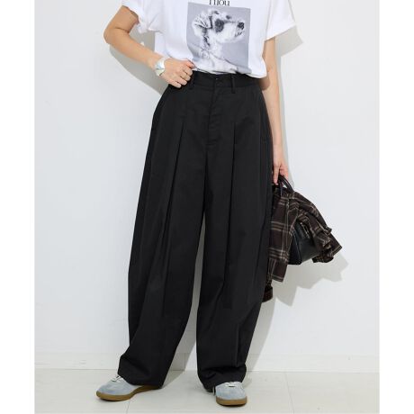 深めのタックをいれたワイド型で、裾に向けて丸みをつけたカーブシルエット。