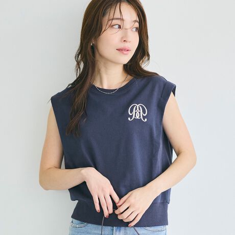 カジュアルに差がつく、エンブレムロゴ入りノースリーブトップス