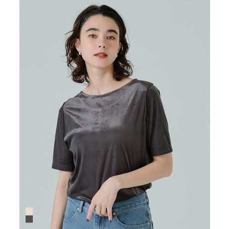 上品な光沢感が魅力のベロア素材を使用した、前後2way仕様の半袖トップスです。