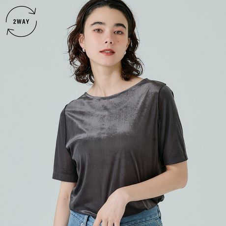 上品な光沢感が魅力のベロア素材を使用した、前後2way仕様の半袖トップスです。