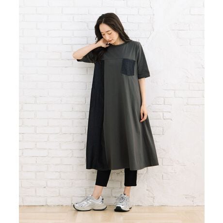 #異素材ワンピース #バイカラーワンピース #大人カジュアル #ゆったりコーデ #ワンマイルウェア #sabstreet