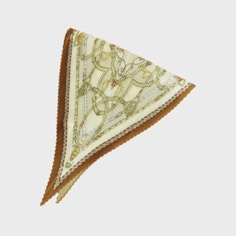 プリーツ加工が施されたスカーフは、エレガントなチェーン柄が特徴。