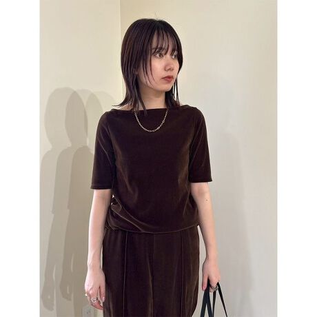 <b>【透け感があるのにベロア素材。秋の訪れを一足先に楽しめる、ボートネックのTOPS】</b>