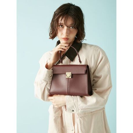フロントに配したロゴ入りのバックルが、クラシックな中にも高級感を漂わせるワンハンドルバッグ。フェイクレザーは品のあるシボ感が特徴で、ブラックのみ縦に流れるような独特の表情を持たせています。内部には大きめのポケットを2つ備え、見た目以上の収納力を実現。接続パーツにはチャームやキーホルダーが付けやすい仕様を採用し、自分らしいアレンジも楽しめます。ショルダーストラップは取り外し可能で、シーンに応じて使い分けられる2WAYデザインです。