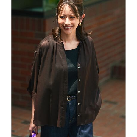 フロントと袖にタックを効かせた、表情豊かなデザインブラウスです。袖に立体感を持たせつつも、シアー感のある素材が軽やかな印象を演出します。スカートにもパンツにも合わせやすい丈感で、様々なボトムスと好相性。オフィスシーンではきれいめパンツと合わせて知的な印象に、デニムと合わせてカジュアルダウンすればデイリーにも活躍します。同シリーズのスカートと組み合わせたスタイリングもおすすめ。一枚で着るだけでサマになり、コーディネートに華やかさをプラスしてくれるアイテムです。カラーは、印象引き締まるブラック(#005)、カジュアルスタイルに映えるダークブラウン(#035)、目を引く深みのあるブルー(#070)の3色展開です。