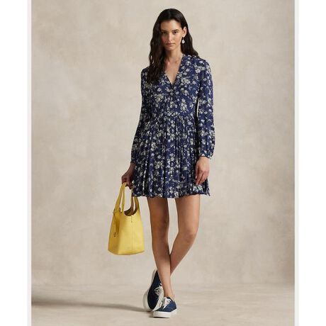 超軽量のクレープを使用し、蝶貝ボタンをあしらったフロントプラケットをデザインに取り入れたフローラルドレス。ウエストのシャーリングでボリューム感をプラスしたフルスカートが特徴的な、フィット & フレアのシルエット・フィット & フレアのシルエット / 太もも丈・Vネックライン / 蝶貝ボタン付きプラケット・長袖、ボタンとループ留めのカフス / 肩にシャーリング・胸元とウエストはパネル構造 / 胸元にダーツ / ウエストにシャーリング・裏地なし・モデル身長178cm、着用サイズ4※商品の色味は、光のあたり具合など諸条件により色感が多少異なって見える場合がございますので予めご了承下さい※注意:柄の配置は、商品によって異なります。 【素材】・本体:レーヨン 100%【生産国】カンボジア