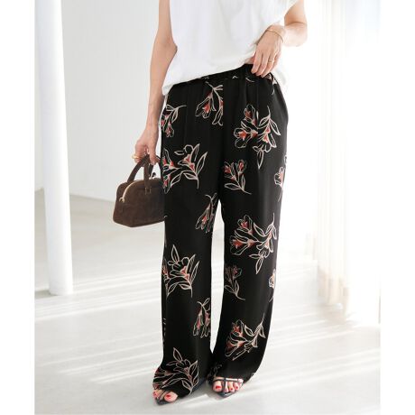 繊細なタッチで描かれた大ぶりのフラワープリントがコーデの主役になるパンツ。