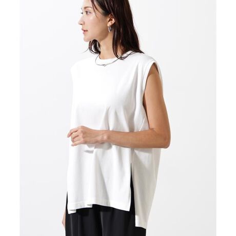 上質なコットンの強撚糸で編み上げたジャージー。ほど良いシャリ感と美しいドレープ性、優れた吸水性が特徴です。フレンチスリーブプルオーバーは直線的なショルダーラインがシャープかつクールな雰囲気の一着。きゅっと詰まったネックラインとすっきりとしたシルエットでミニマルなデザインもポイントです。
