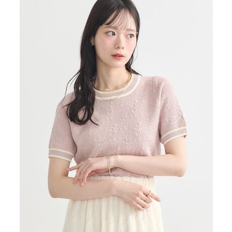立体感のあるフラワーモチーフのジャガードニット素材で仕立てたプルオーバー。コンパクトフォルムながら伸縮性に優れ、快適な着用感も魅力的です。首元、袖口、裾のバイカラーラインがスポーティーなアクセント。合わせるアイテム次第でオン・オフどちらでも活躍するおすすめのアイテムです。
