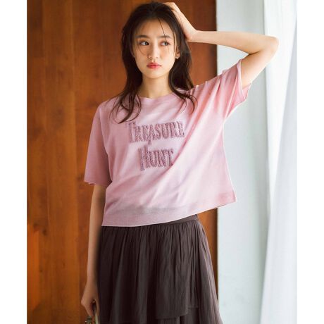 ■デザイン・端正な襟元の開きと肘にかかる長めの袖丈が大人カジュアルな印象のニットT。・リラクシーなシルエットながらも首や肩が美しく見えるサイズ感にこだわりました。・茶目っ気のある『TREASURE HUNT』を、目を惹く相良刺繍で表現し、立体感のあるロゴに仕上げました。・季節が深まっても大活躍間違いなしの佇まいもポイント。・カジュアルでありながら上品にも着こなせるデザインです。