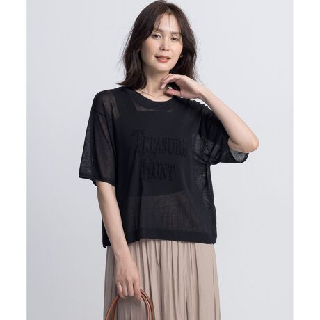 ■デザイン・端正な襟元の開きと肘にかかる長めの袖丈が大人カジュアルな印象のニットT。・リラクシーなシルエットながらも首や肩が美しく見えるサイズ感にこだわりました。・茶目っ気のある『TREASURE HUNT』を、目を惹く相良刺繍で表現し、立体感のあるロゴに仕上げました。・季節が深まっても大活躍間違いなしの佇まいもポイント。・カジュアルでありながら上品にも着こなせるデザインです。