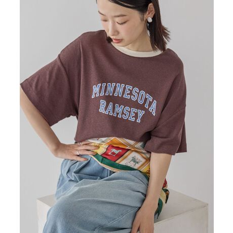 ヴィンテージ風のロゴプリントが映える半袖プルオーバー。ネップ感のある肌触り柔らかなコットン素材で仕立てた着心地の良い1枚です。それぞれのロゴカラーに合わせてデザインした衿部分の配色もおしゃれなポイント。デニム合わせはもちろん、あえてタイトスカートを合わせたきれいめカジュアルなスタイリングもおすすめです。透け感[ややあり]