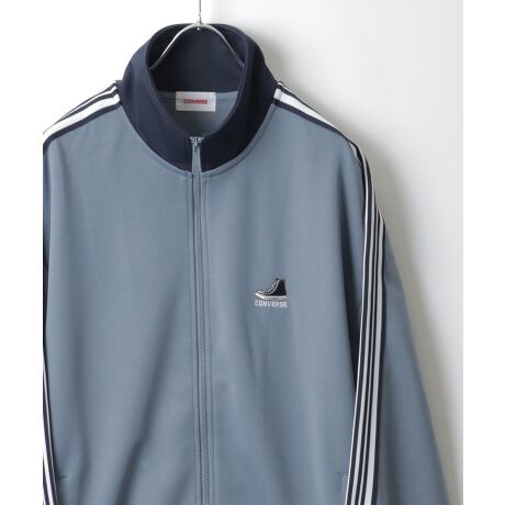 クラシックなトラックジャケットのデザインをベースに、左胸にはさりげないコンバースのシンボルでもあるシューズ刺繍を配置。