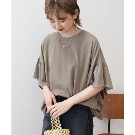 袖とバックにたっぷり入ったフリルが特徴的な半袖トップス。ゆったりとしたシルエットとフリルが、体形カバーを叶えてくれます。程よくカジュアルなデザインながらも、フリル使いで女性らしさも兼ね揃えた1枚。定番のデニムやチノパン合わせはもちろん、ワイドパンツと合わせたルーズな着こなしもおすすめです。透け感[ややあり]