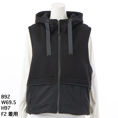 異なる素材を組み合わせて同系色でデザインしたベスト。
