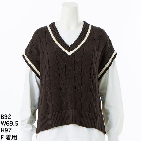 [型番:7253808]ライン入りケーブルニットベストは1枚でいつものコーデを格上げする魔法のアイテムです。