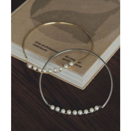 メタルラインに樹脂パールを組み合わせたチョーカーネックレス。
